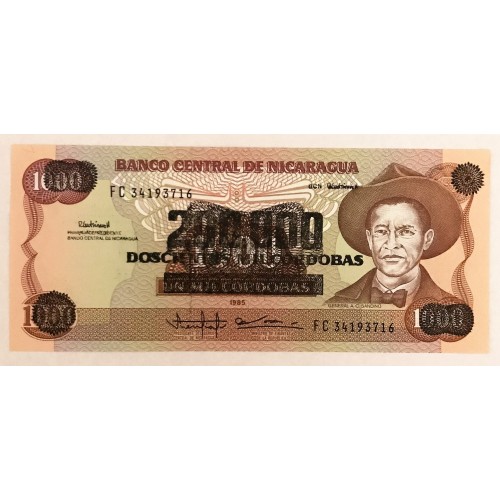 Nicaragua 1990 Two Hundred  Thousand  200,000 on One Thousand 100