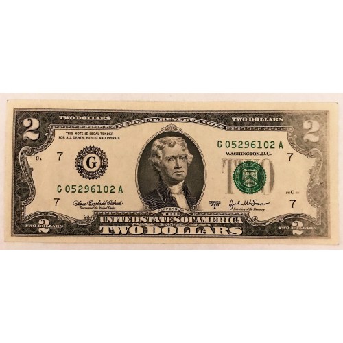 United States of America 2003 Two 2  Dollars Bankknote. Serial: G05296201A